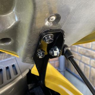 次に、運転席側フェンダー側にある意味深な金具のねじを緩めて、ダンパー取付金具(小)を挟んでから、元のねじは使わず六角レンチを使うねじで締めます。